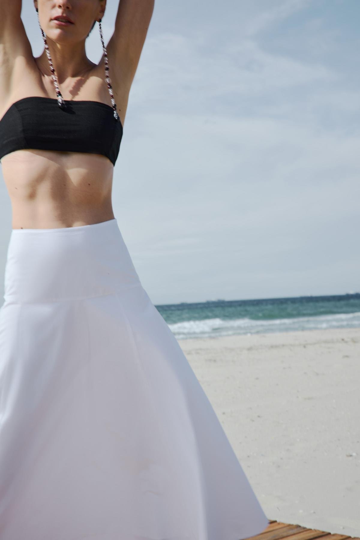 Zamansız bir tasarıma sahip olan Isola Korsajlı Etek, kalın kemer detayıyla belini vurgularken kloş kesimiyle hareketli ve zarif bir görünüm sunar. Görünümünü Gabriel Halter Yaka Keten Bluz ile tamamla.
