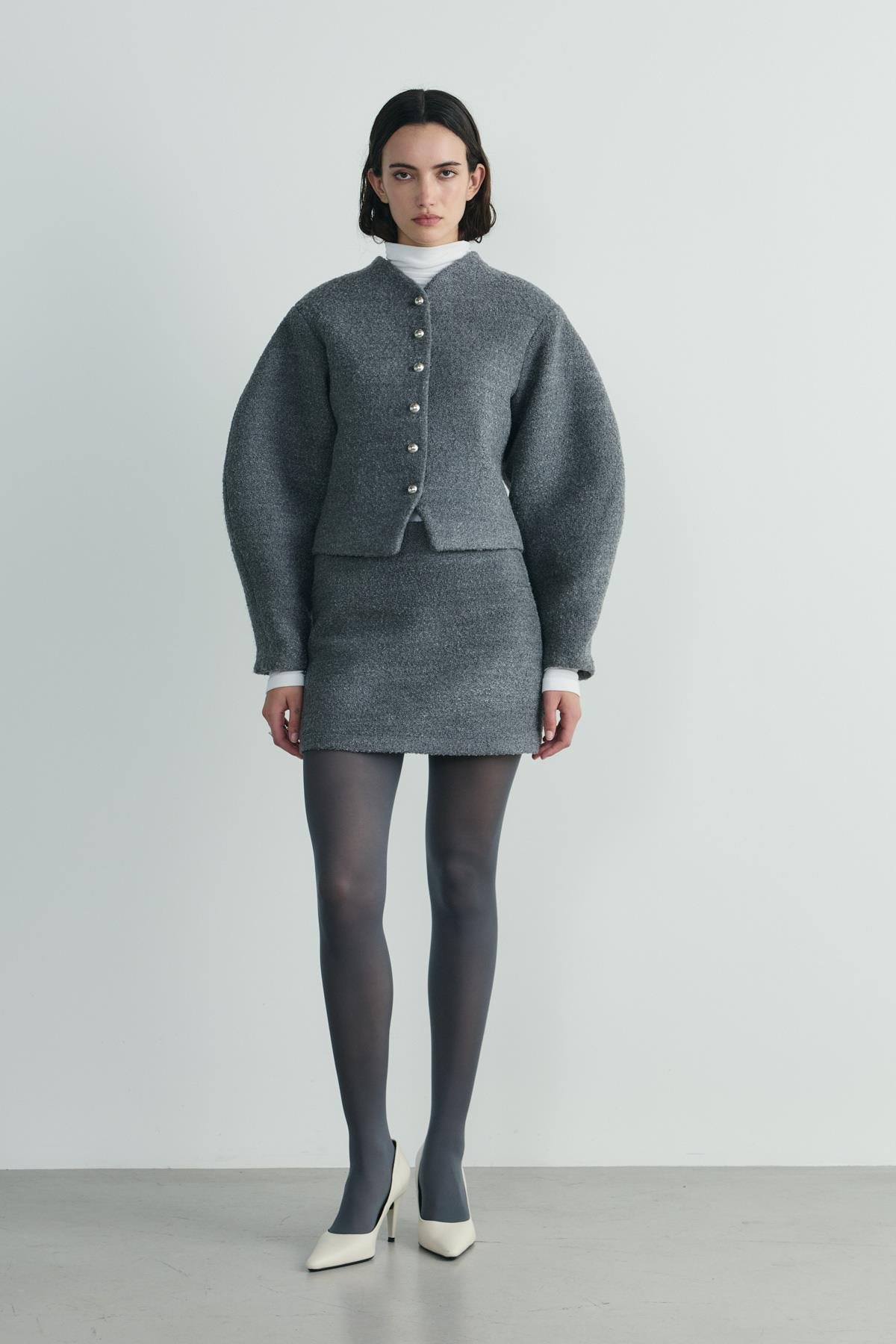 Gigi Belden Oturtmalı Ceket, bel hizasında biten tasarımıyla hareket özgürlüğü sunarken, balon kol detayıyla güçlü bir görünüm oluşturur. Görünümünü Gigi Mini Etek ile tamamla.