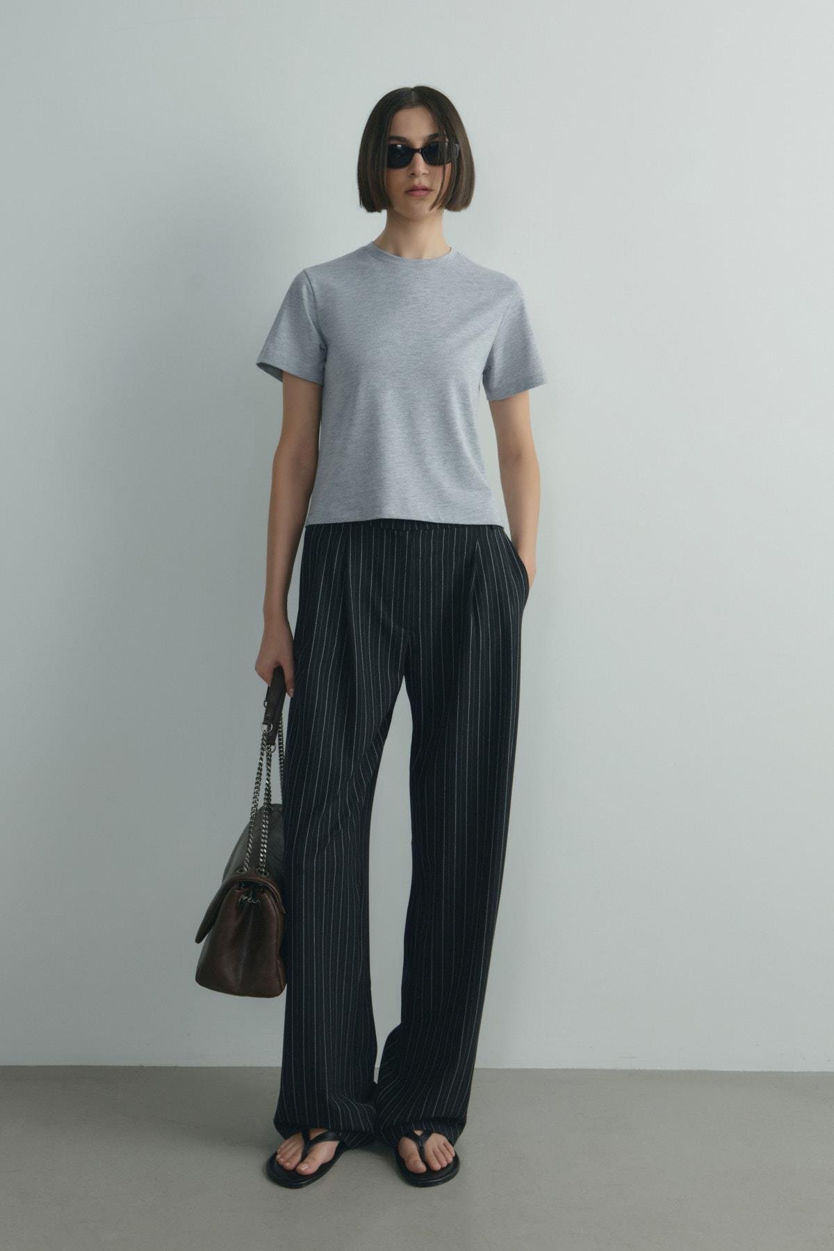 Esnek ve yumuşak dokusuyla öne çıkan Pamuklu Basic Tişört, iç göstermeyen pamuklu yapısıyla gün boyu rahat hissettirir. Bisiklet yaka ve kısa kol formu sayesinde tek başına tercih edebilir ya da ceket ve gömlek altına ekleyerek günlük stiline adapte edebilirsin. Zamansız çizgisiyle her mevsim gardırobunun temel parçaları arasında yer alır. Görünümünü Lina Pileli Çizgili Pantolon ile tamamla.