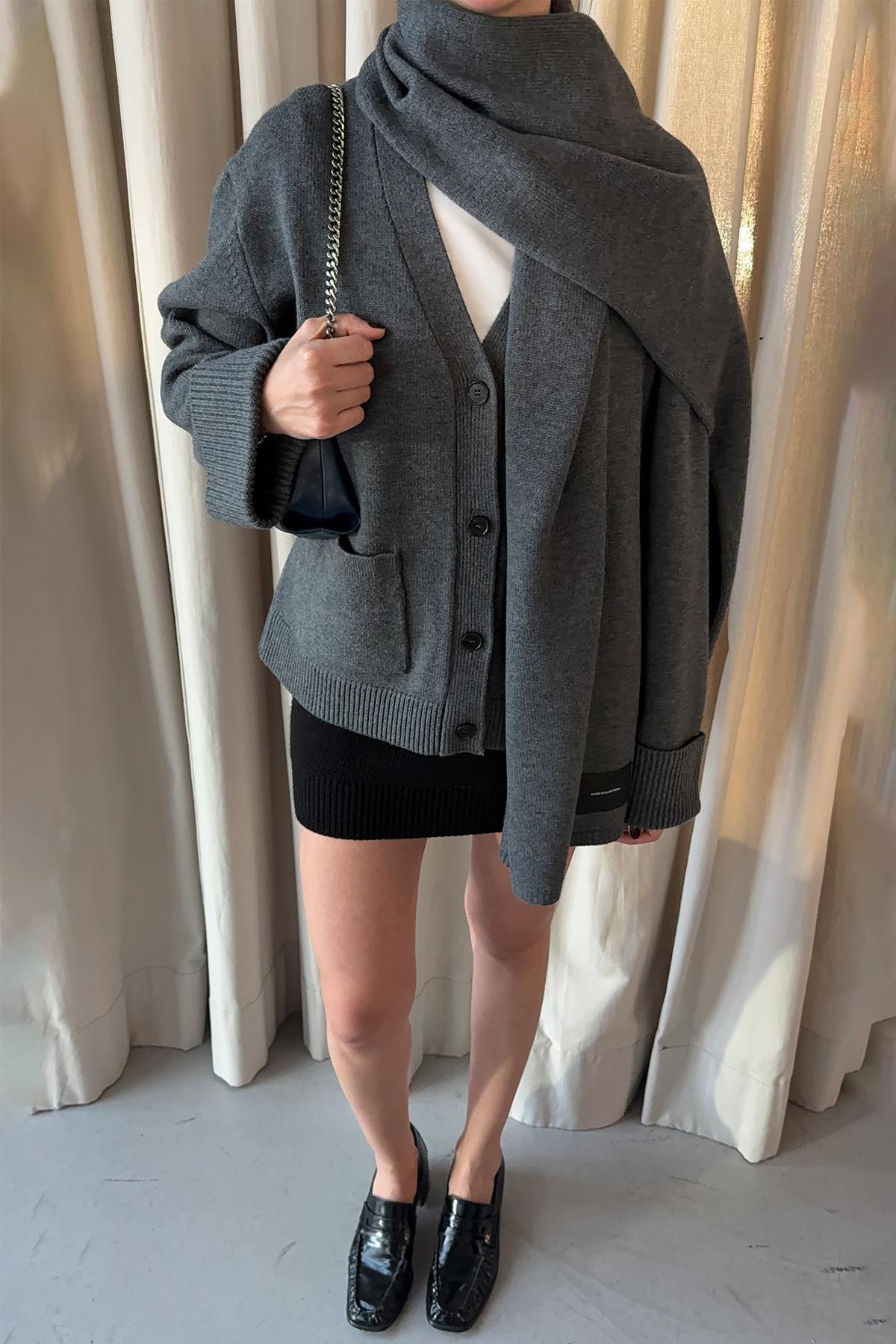 Ura Triko Düğmeli Hırka, kalın dokusu ve rahat kalıbıyla kış gardırobunun anahtar parçalarından biri. Ura Triko Atkı ile birlikte zahmetsiz bir kış görünümü oluşturabilirsin.