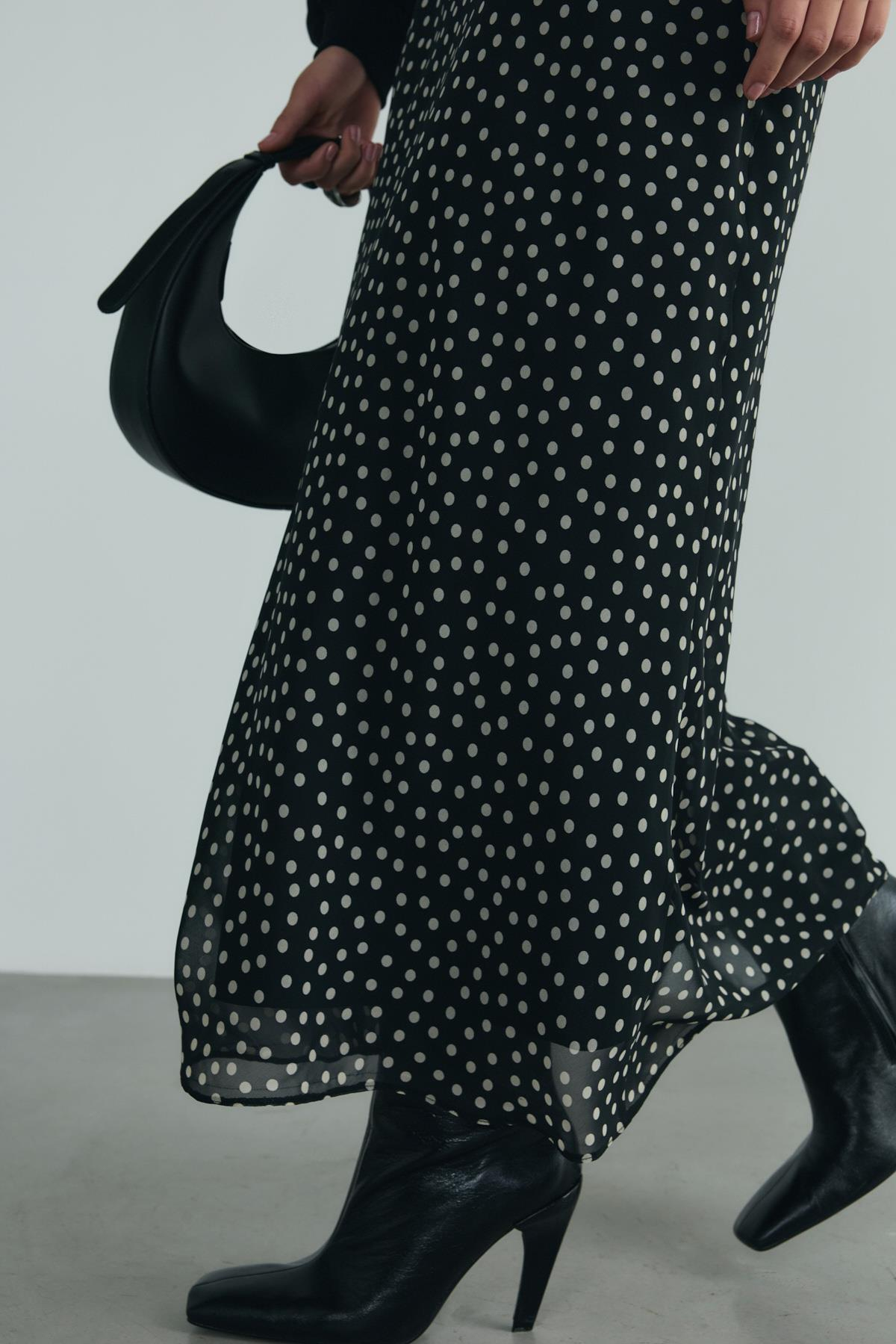 Miranda Şifon Midi Etek, hafif kumaşı ve dökümlü yapısıyla görünümüne zarif bir hareket katar. Puantiye deseni, görünümünü bir üst seviyeye çıkarırken, lastikli beli gün boyu konforlu hissetmeni sağlar. Görünümünü Hardy Kapüşonlu Sweatshirt ile tamamla.