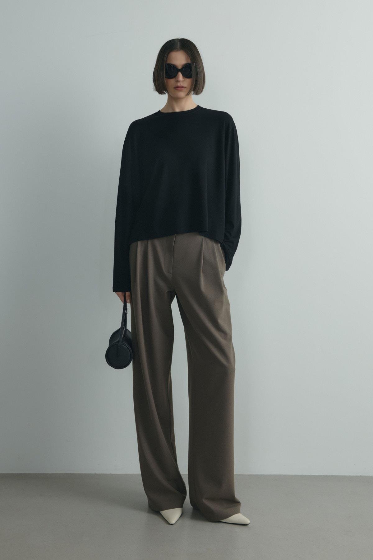 Nara Tişört, Pamuk karışımlı kumaşı soft touch hissiyle gün boyunca konforlu bir kullanım sunar. Dökümlü yapısı rahat bir akış sağlarken, uzun kollu basic formu mevsim geçişlerinde pratik bir seçenek oluşturur. Görünümünü Lina Pileli Çizgili Pantolon ile tamamla.